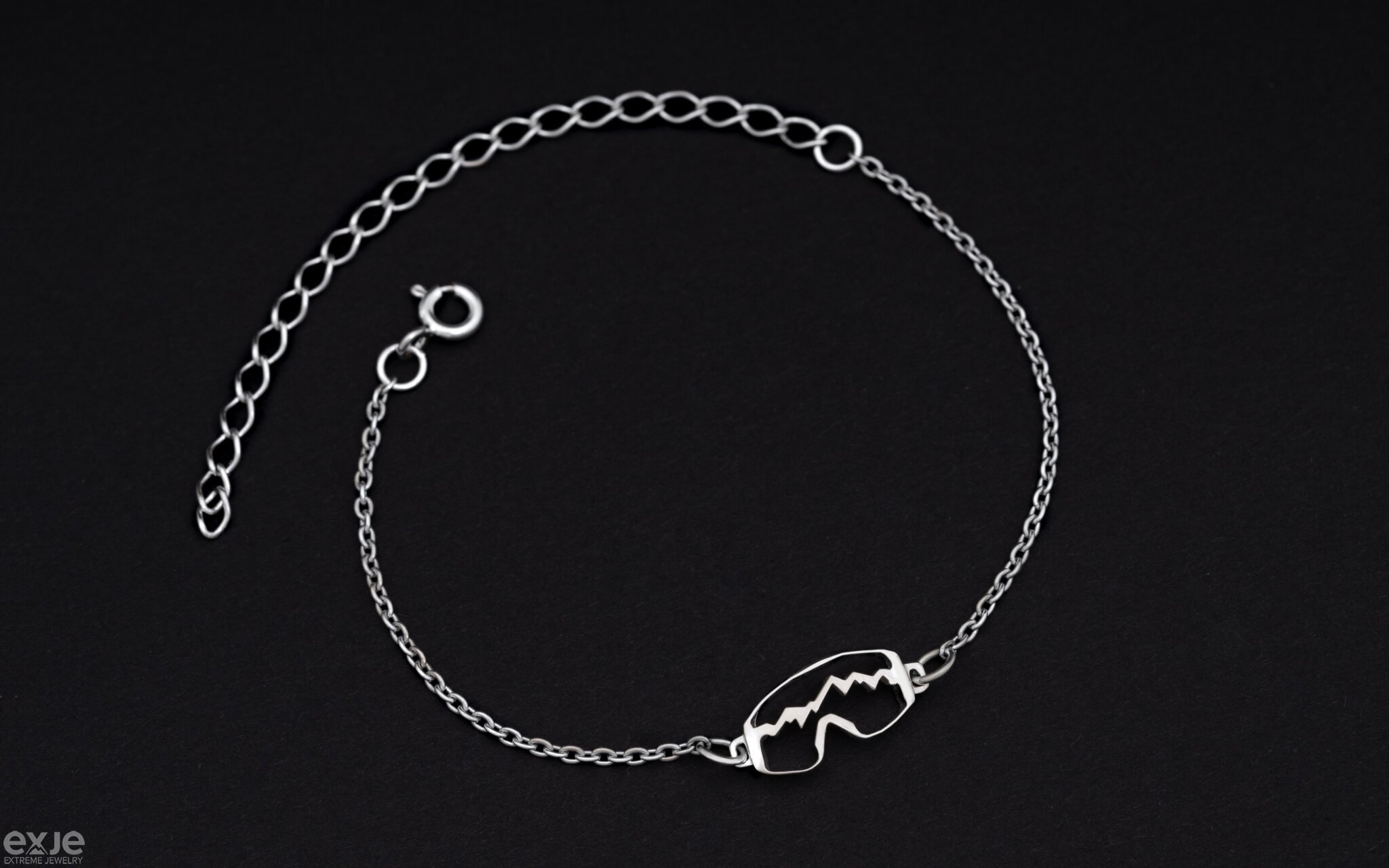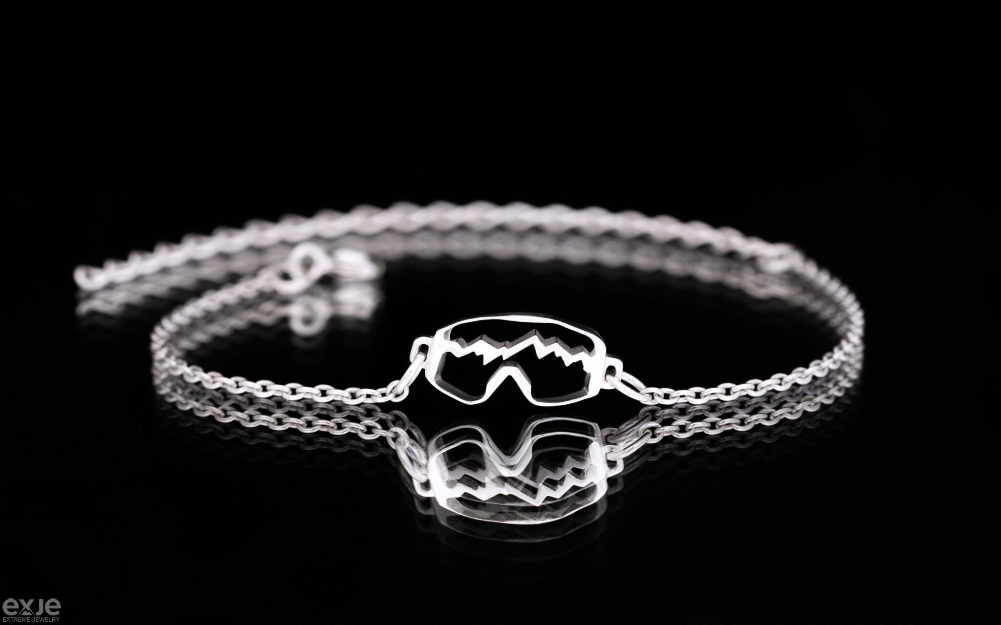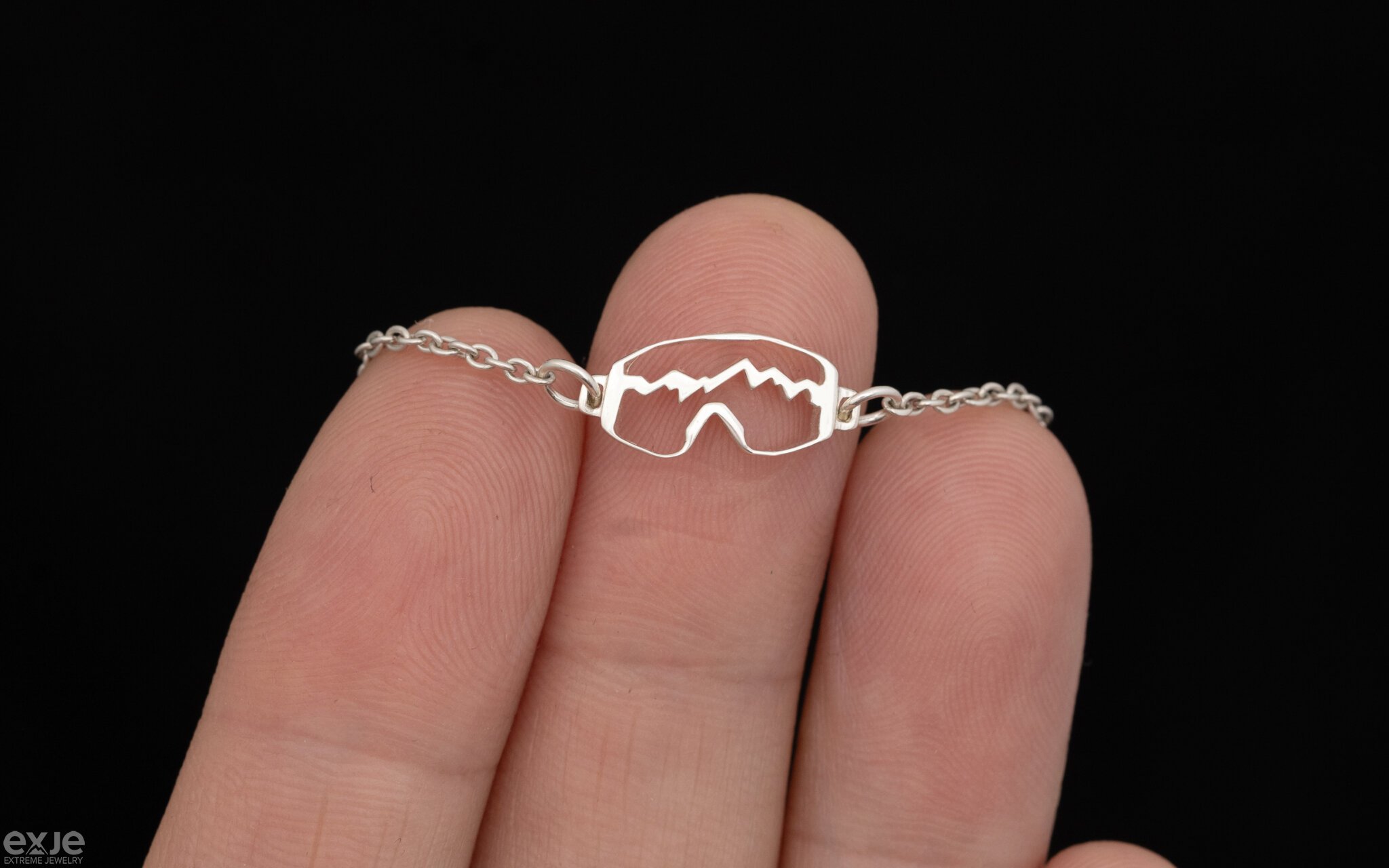Серебряный утонченный браслет-цепочка «Горная Маска». Браслет для любителей зимних видов спорта, горных лыж и сноуборда.