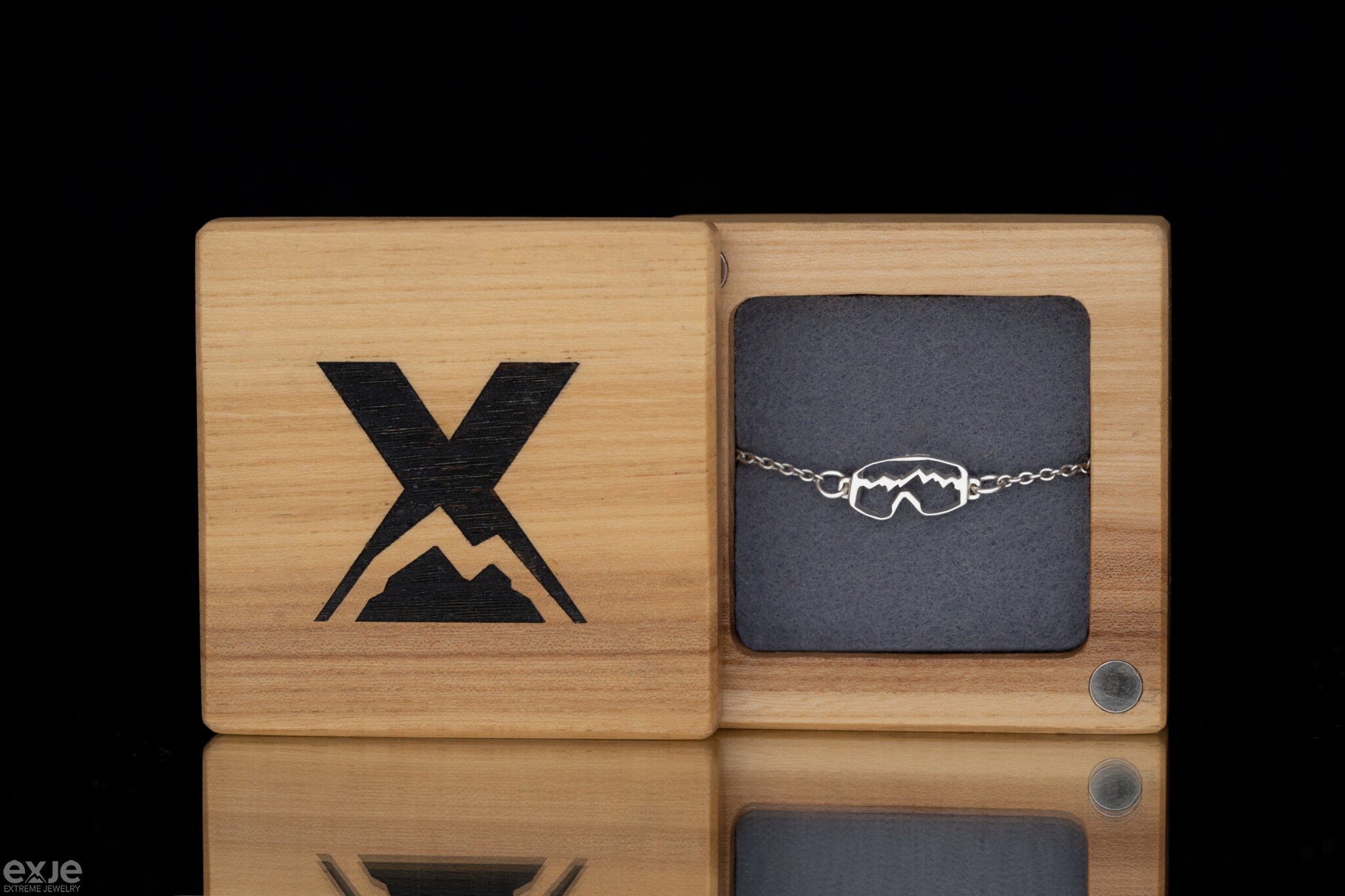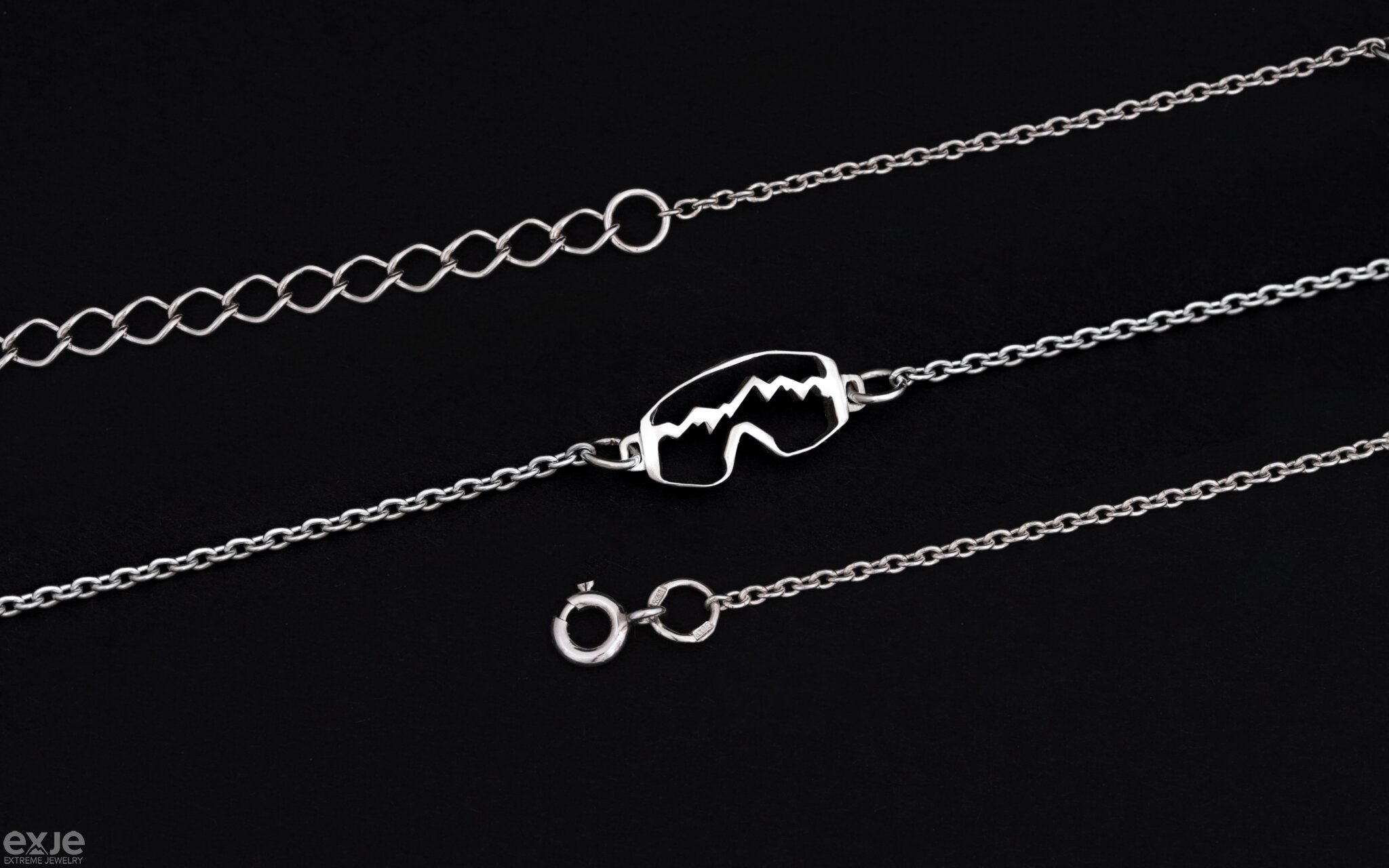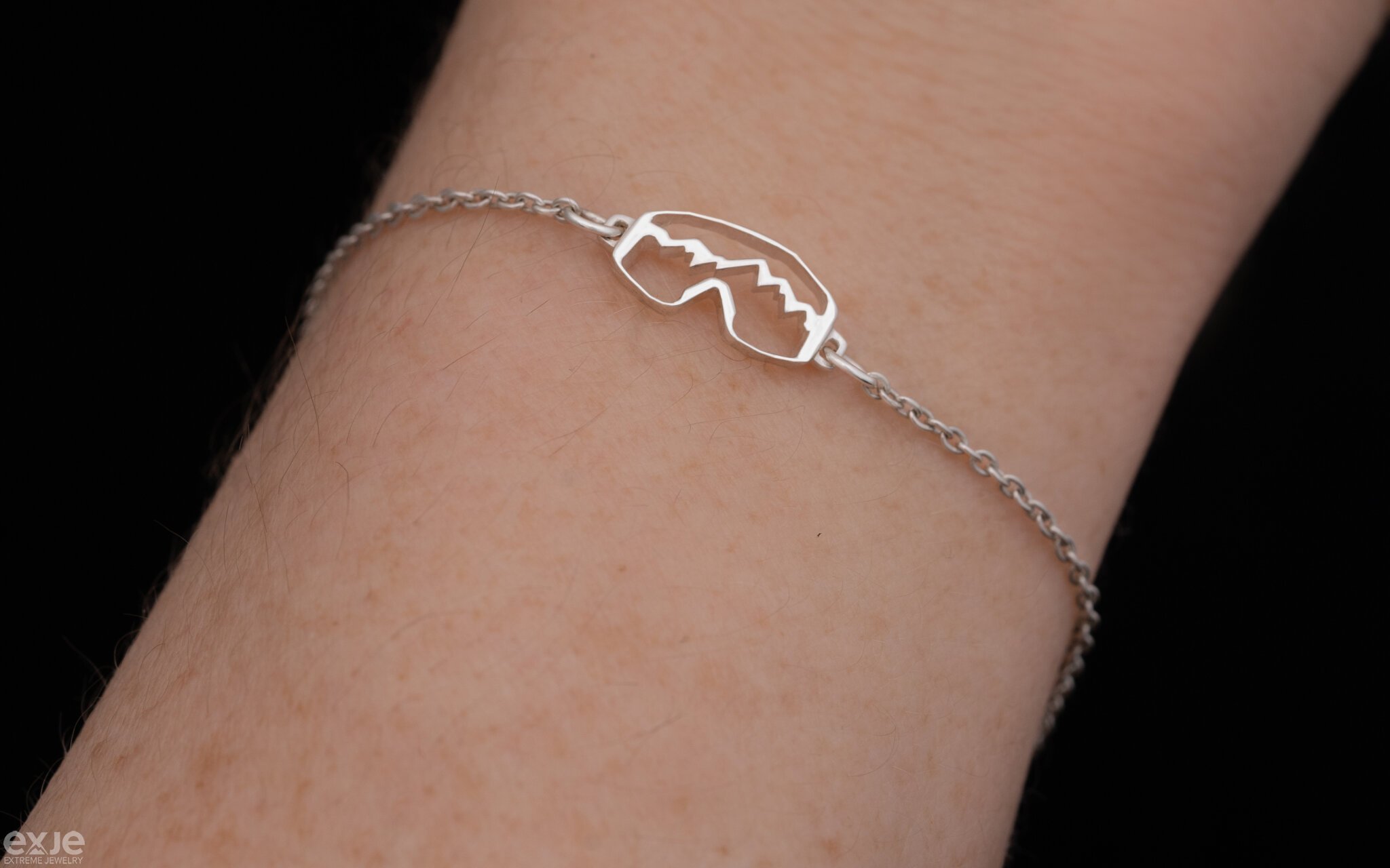 Серебряный утонченный браслет-цепочка «Горная Маска». Браслет для любителей зимних видов спорта, горных лыж и сноуборда.